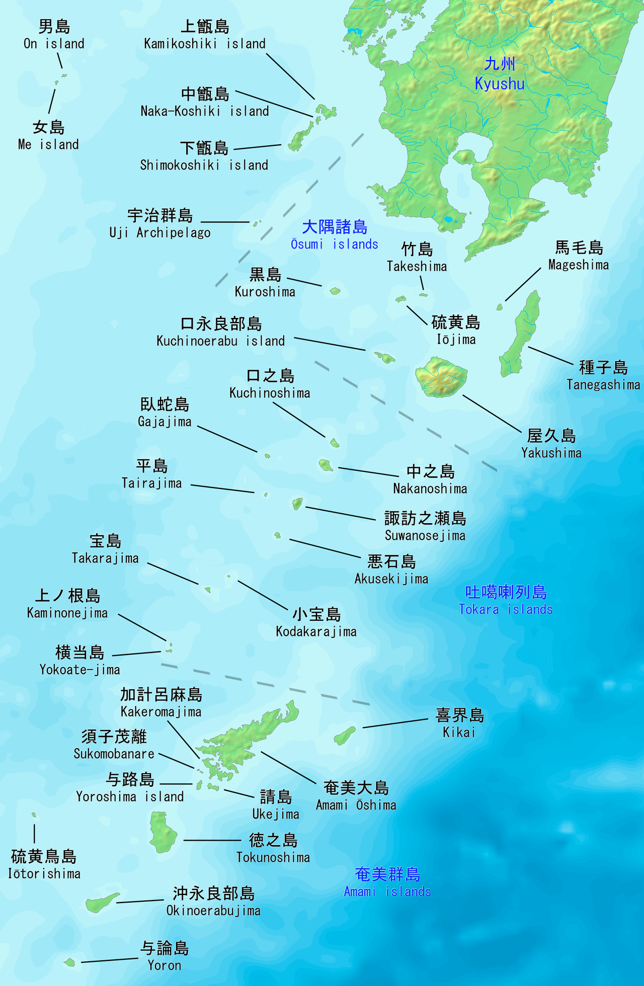 奄美大島(6日間)、加計呂麻島(1日間)、喜界島(1日間)
