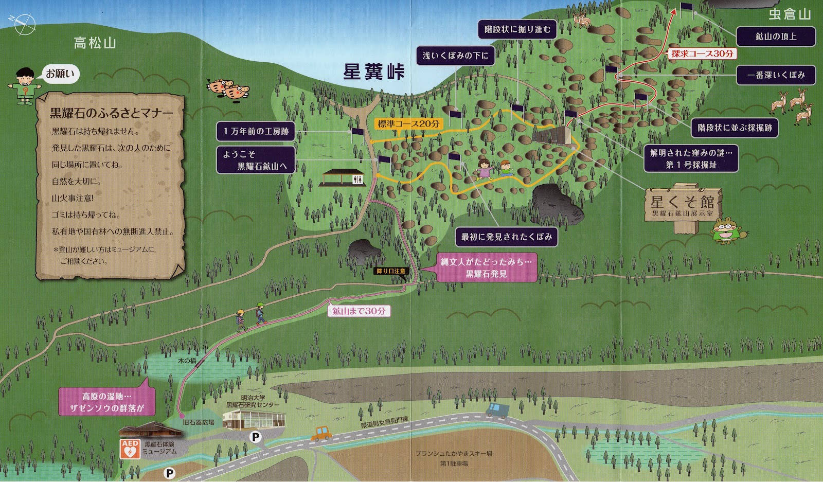 ー14:14黒曜石体験ミュージアムー14:33星糞峠黒曜石鉱山展示室・星糞館14:54