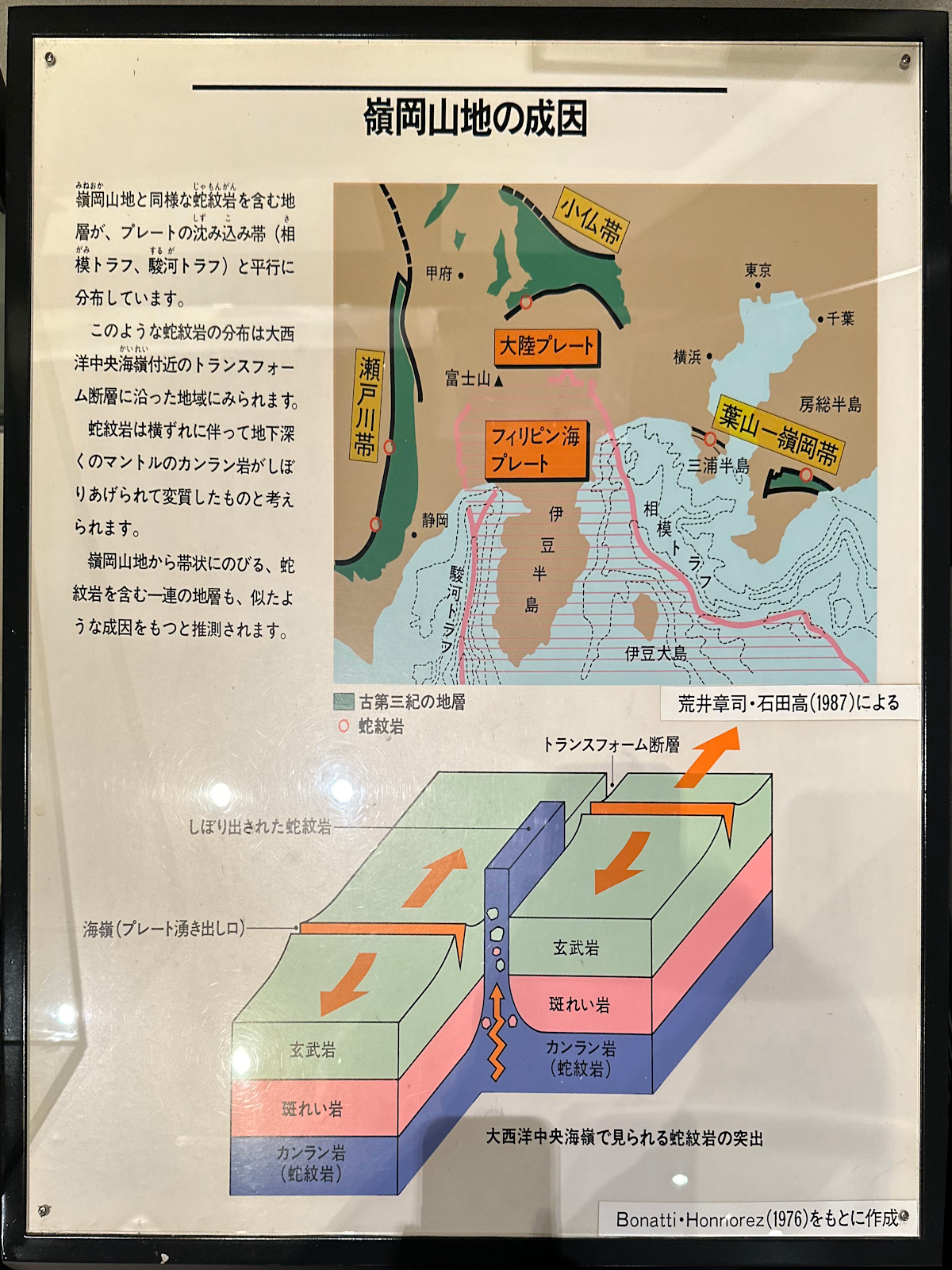 嶺岡山地では多様な火成岩と変成岩が見られる。