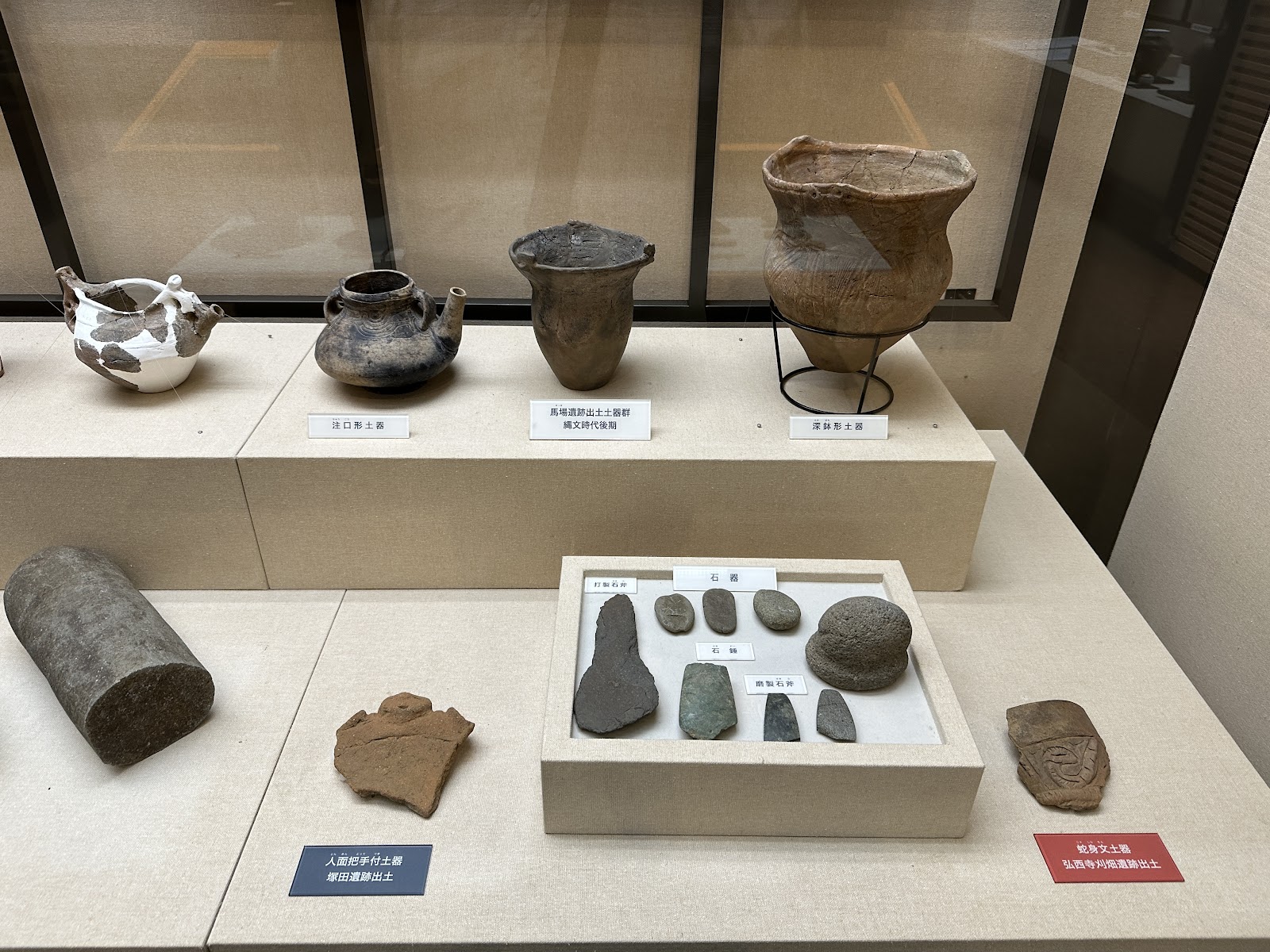 深鉢形土器、注口形土器、石棒、人面把手付き土器