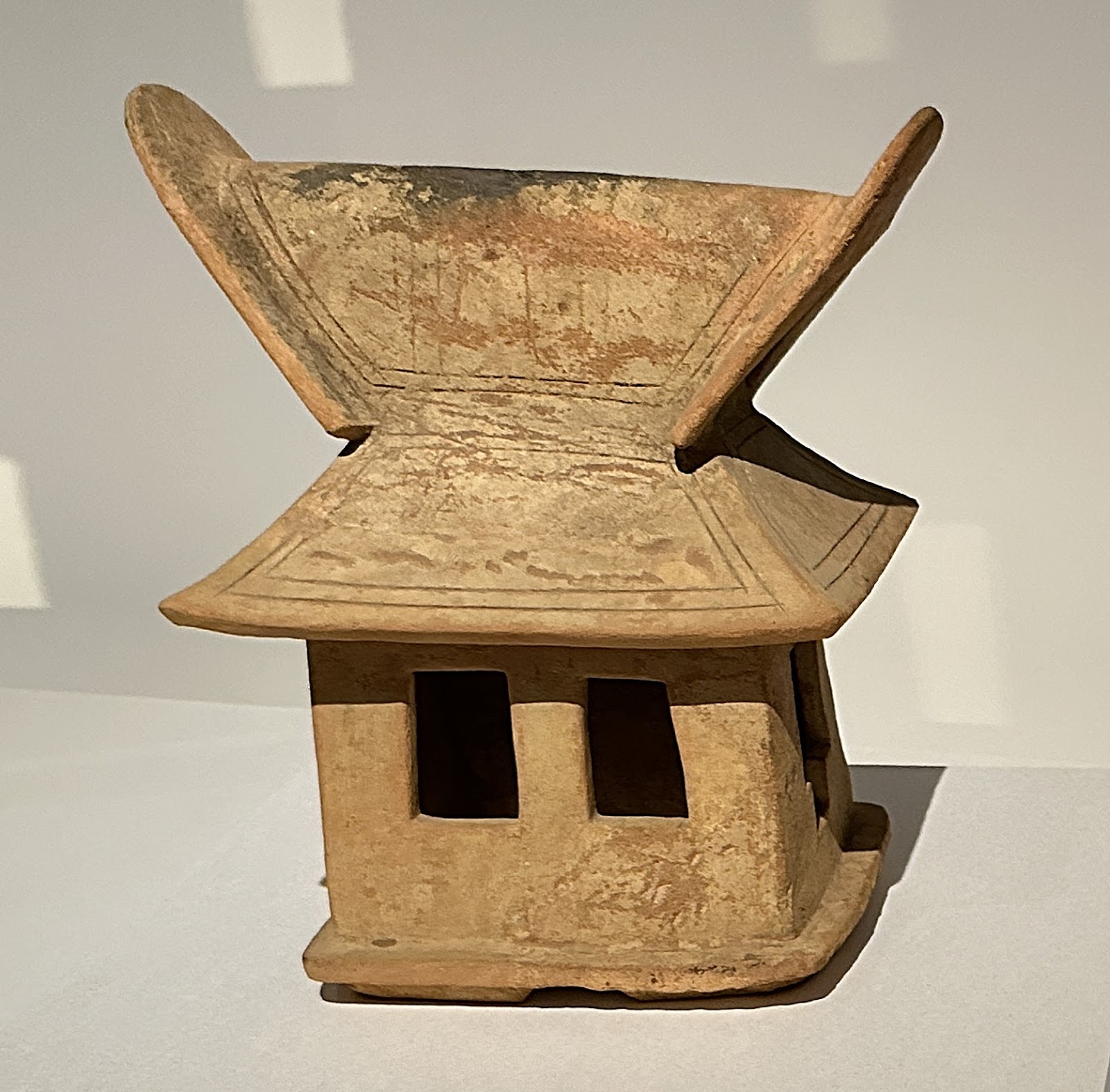 各平側には半円形刳方の出入口部をもつ稀少な造形の家形埴輪。
